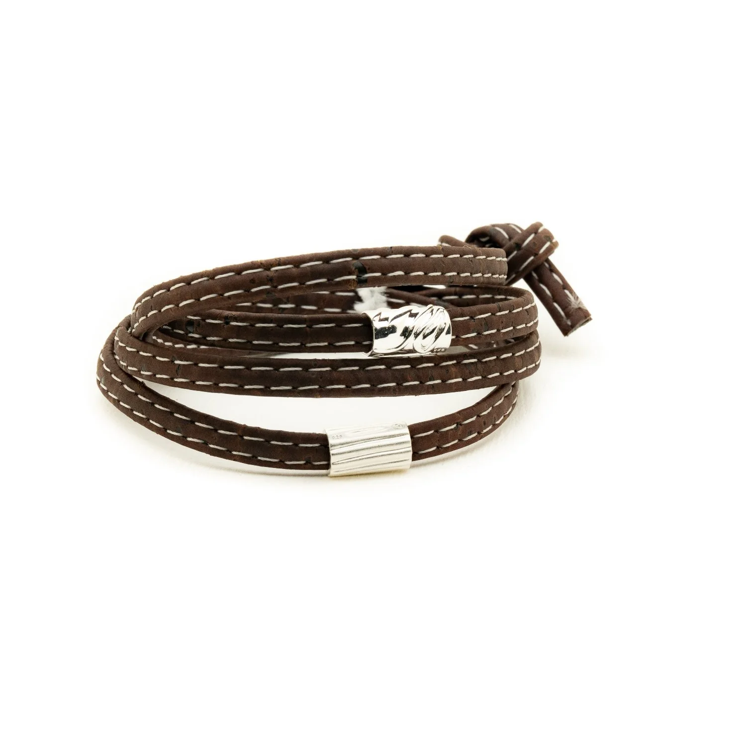 These unisex bracelets come in one size that can be cut to fit any size wrist. There are three different colours of stitched cork wrap to choose from and they will come set up with our Ripple & Swirl silver beads.