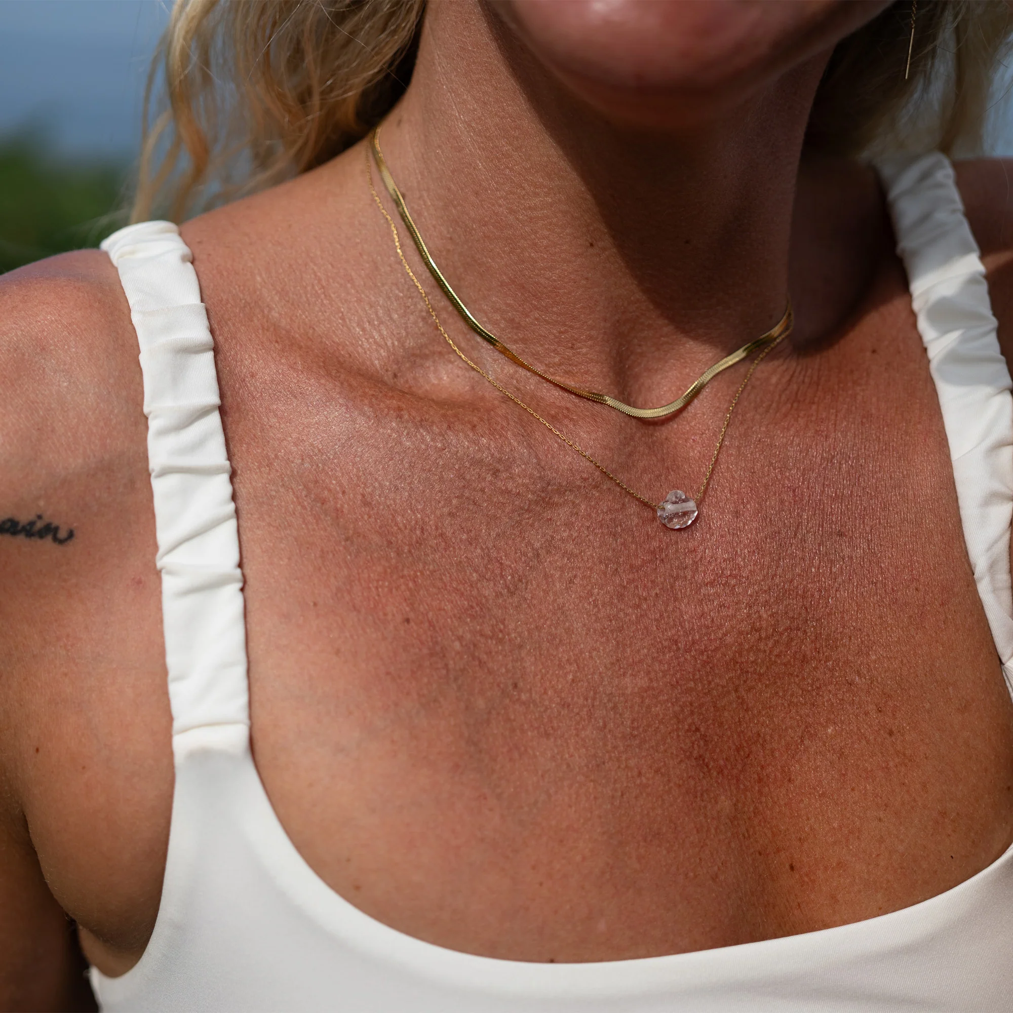We will melt a few grains of sand from your chosen beach into bead of clear glass whilst molten. Your shell will be made to order and after a night in our kiln will be strung onto a fine gold fill chain necklace in a length of your choice.