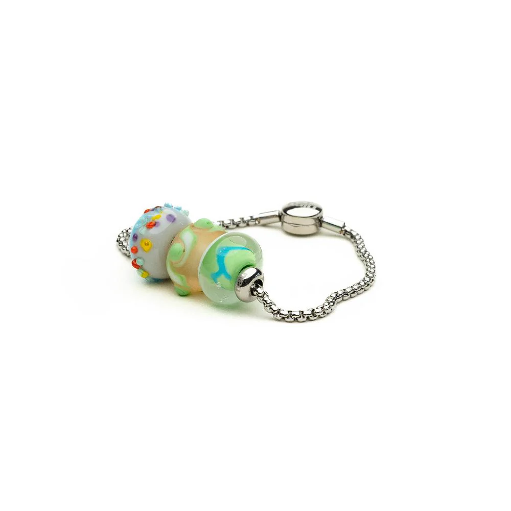 This Silver Ula Bracelet is perfect for carrying your favourite glass collection beads or wear it by itself! If you want your beads to stay in place on the chain, add a set of Silver Steel Stopper Beads or select the checkbox below to add as many sets (you will get two beads per set) as you want.